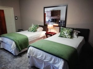 Alphonse is a two-bedroom unit and the only 4-sleeper unit at Monte Roza Guest House. Ideal for a family of four people and has a queen-size and two ¾ beds, a lounge and kitchen.